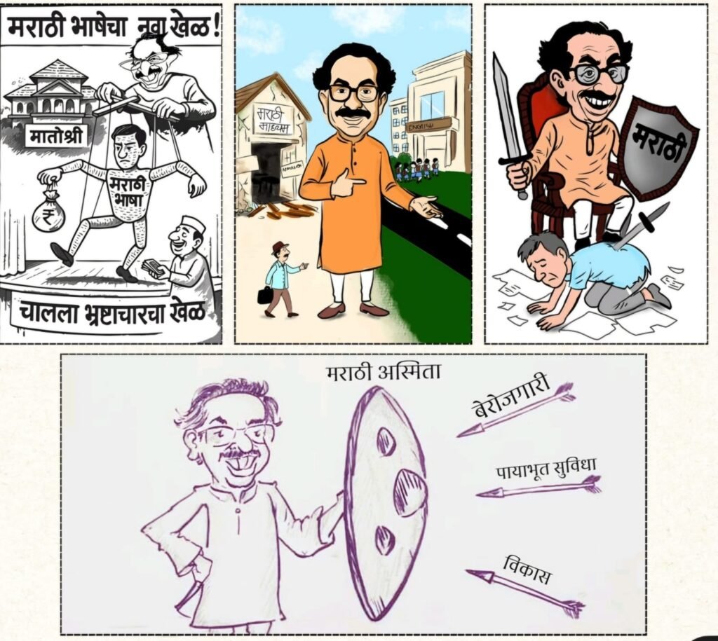 राज्य करण्याची वेळ आली की मराठीचा मुद्दा बाजूला ठेवला जातो, आणि त्यावर प्रश्न विचारले की बेजबाबदार, अर्थहीन व मग्रूर उत्तरे देणे ही दोन्ही ठाकरे बंधूंची खासियत आहे. उद्धव ठाकरे यांच्या शिवसेनेचा बालेकिल्ला समजल्या जाणाऱ्या दादर भागातील एका शाळेची वास्तविक घटना माझ्या कानावर आली. महानगरपालिकेच्या त्या शाळेत आजूबाजूच्या वस्तीतील गरीब घरांमधील मराठी-अमराठी अशी सर्व मुले शिकत होती. मात्र त्या शाळेच्या मध्यवर्ती व मोक्याच्या जागेवर स्थानिक राजकीय पुढाऱ्यांची आणि मराठीच्या तथाकथित कैवारींची वक्रदृष्टी पडली. शाळा हलवायची कशी, हा प्रश्न निर्माण झाला. तेव्हा आजूबाजूच्या वस्तीतील दुकाने, टपऱ्या, गाळे आणि वर्कशॉप्स हेच कामगारांचे रोजगाराचे साधन असल्याचे लक्षात आले. ते साधनच हिरावून घेतले तर कामगार स्थलांतरित होतील, असा हिशेब मांडला गेला. त्यानुसार सर्व स्तरांवरून चक्र फिरले. छोट्या-मोठ्या दुकानांवर, टपऱ्यांवर बुलडोझर चालवण्यात आले. स्वाभाविकपणे वस्ती रिकामी झाली. पुढील वर्षी त्या शाळेचा विद्यार्थीसंख्या-पट निम्म्याहून कमी झाला. नियमांनुसार संख्या अपुरी असल्याचे कारण देत शाळेची परवानगी रद्द करण्यात आली आणि ती जागा महापालिकेकडे हस्तांतरित करण्यात आली. जेणेकरून तिथे आलिशान मॉल उभारता येईल, याची खात्री झाली. हेच आहे मराठी माणसाला, मराठी भाषेला आणि मराठी शाळांना निरोपाची आरती करून विसर्जित करण्याचे सूत्र. आणि आम्ही उघडपणे सांगू इच्छितो की ज्यांच्या हातात राजसत्ता आहे, तेच या कृतघ्न आणि विनाशकारी कृत्याला जबाबदार आहेत, म्हणजे कोण? हे सुज्ञास सांगणे न लगे….
